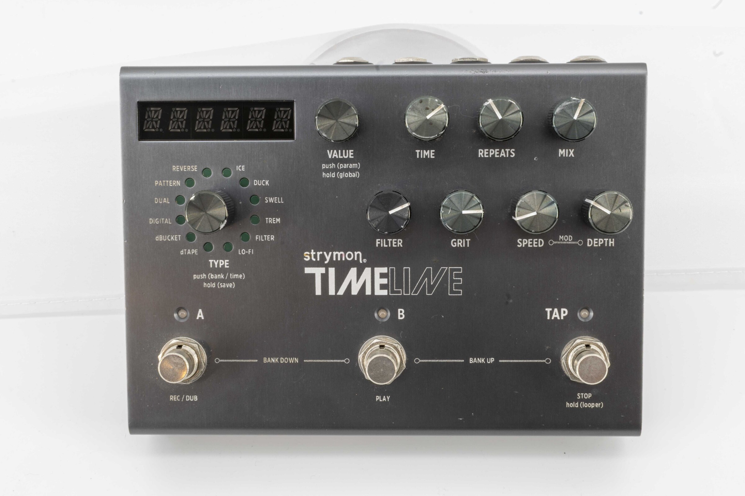 Preowned Strymon Timeline Delay Pedal—premium soundscapes with 12 unique delay modes. Perfect for musicians seeking versatile, high-quality effects to enhance their performances.